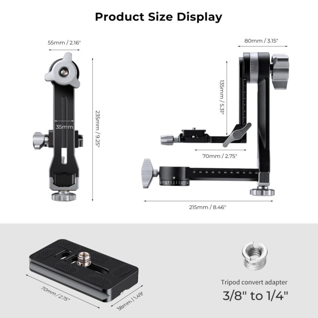 - * Vysoká kompatibilita: Spodní část gimbalové stativové hlavy má 3/8palcový otvor pro šroub, lze ji široce použít na různé profesionální stativy; je také dodávána s 1/4palcovou odnímatelnou rychloupínací deskou, která je vhodná pro zrcadlovky a digitální zrcadlovky.