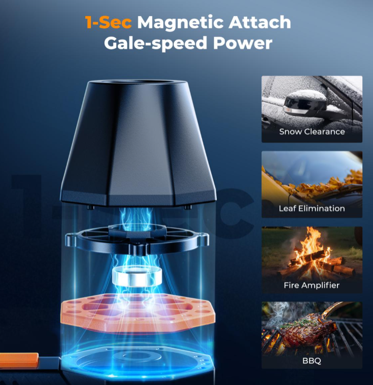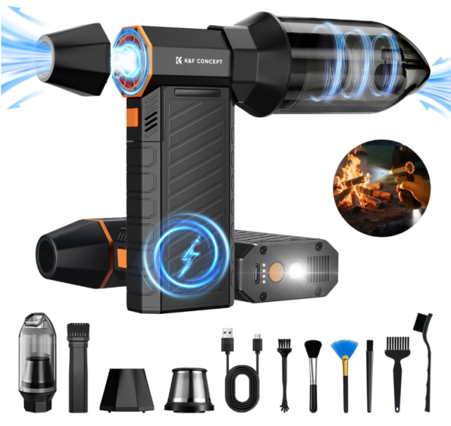 Magnetický stlačený vzduchový čistič K&F Concept 2 v 1 je dobíjecí zařízení s bezkartáčovým motorem (300 000 ot./min, rychlost vzduchu 150 m/s, síla 250 G), které kombinuje vysoký výkon foukání, vakuové sání a LED osvětlení pro čištění počítačů, klávesnic, automobilů a outdoorového vybavení. Díky magnetickým nástavcům, 6 multifunkčním kartáčům, baterii s kapacitou 6 000 mAh (180 minut provozu) a 3 režimům nabízí všestranný výkon s ochranou proti přehřátí v přenosném balení.