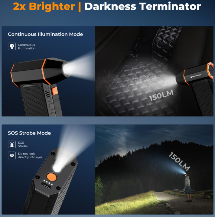 Magnetický stlačený vzduchový čistič K&F Concept 2 v 1 je dobíjecí zařízení s bezkartáčovým motorem (300 000 ot./min, rychlost vzduchu 150 m/s, síla 250 G), které kombinuje vysoký výkon foukání, vakuové sání a LED osvětlení pro čištění počítačů, klávesnic, automobilů a outdoorového vybavení. Díky magnetickým nástavcům, 6 multifunkčním kartáčům,…