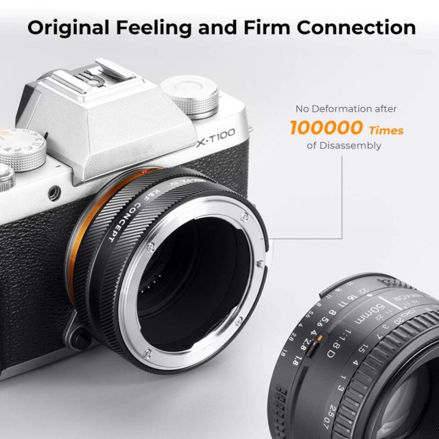 Odhalte nové možnosti s adaptérovým kroužkem pro objektivy Nikon řady F na tělo Fuji řady X. Tento adaptér je precizně vyroben z vysoce kvalitní slitiny mědi a hliníku a zaručuje odolnost a pohodlný a hladký proces demontáže a montáže. Díky plnému manuálnímu ovládání, stabilní konstrukci a protiskluzovým prvkům zaručuje bezpečné uchycení. Logo s červenou tečkou značí přesné zarovnání, což usnadňuje instalaci a demontáž bez námahy. Kombinace kloubového kroužku a bajonetu je pevně integrovaná, což eliminuje možnost uvolnění. Zlepšete své fotografické zážitky s tímto spolehlivým a uživatelsky přívětivým adaptérem.