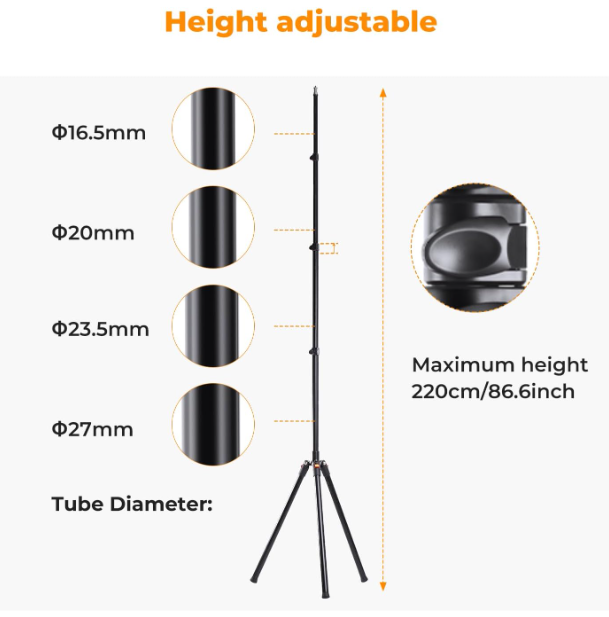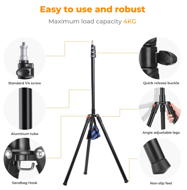 Hliníkový světelný stojan K&F Concept 86,6 palců/2,2 m je kompaktní, lehký stativ určený pro fotografování ve studiu i v terénu, který se vyznačuje jedinečnou skládací základnou ve stylu stativu, kterou lze složit na pouhých 21,7 palců pro snadnou přepravu. Je vyroben z odolné hliníkové slitiny s rychloupínacími zámky pro plynulé nastavení výšky…