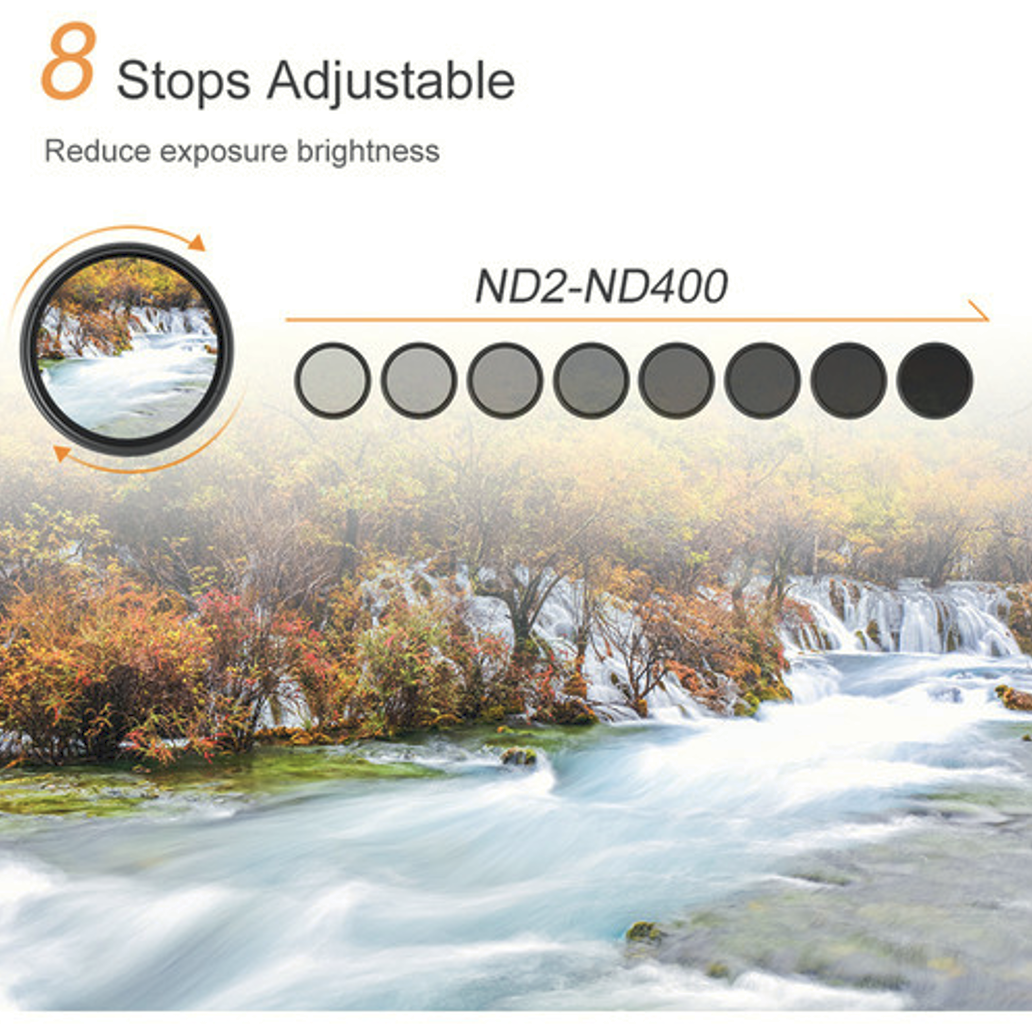 Odemkněte kreativní ovládání expozice s filtrem K&F Concept 40,5 mm True Color Variable ND2–ND400 – kompaktním, ale výkonným nástrojem určeným pro fotografy a filmaře, kteří vyžadují flexibilitu a optickou přesnost. Díky plynule nastavitelnému rozsahu od ND2 do ND400 vám tento filtr poskytuje plnou kontrolu nad úrovní osvětlení, ať už fotografujete krajiny s dlouhou expozicí, vytváříte hedvábné vodní efekty, zachycujete dynamické pohybové stopy nebo udržujete kinematografické rychlosti závěrky v jasném venkovním prostředí.