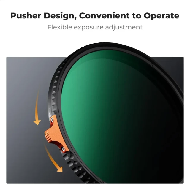 S odrazivostí pouhých 0,15 % filtr účinně potlačuje zdvojení obrazu a odlesky, zejména v situacích s protisvětlem nebo silným osvětlením, a zajišťuje tak čistou kvalitu obrazu. Rýhovaný rámeček je navržen jako posuvná páčka pro přesné nastavení. Každá poloha od ND2 do ND400 je jasně označena, což umožňuje plynulou 360° rotaci, ideální pro použití při fotografování i natáčení videa.