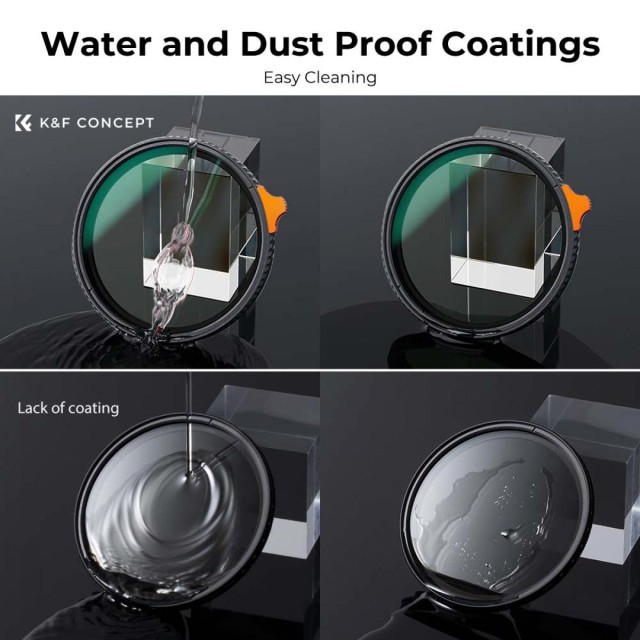 - 【Dvoustranná nanovrstva】 Objektiv má na obou stranách 28 vrstev nanovrstvy, která je vodotěsná, odolná proti oleji a poškrábání. Účinně zabraňuje poškrábání povrchu čočky větrem. Pokud se na filtr náhodou dostane voda, kapky vody zůstanou ztuhlé a nerozšíří se, což usnadňuje přenášení a čištění a při dlouhodobém skladování hraje roli ochrany proti zamlžování.