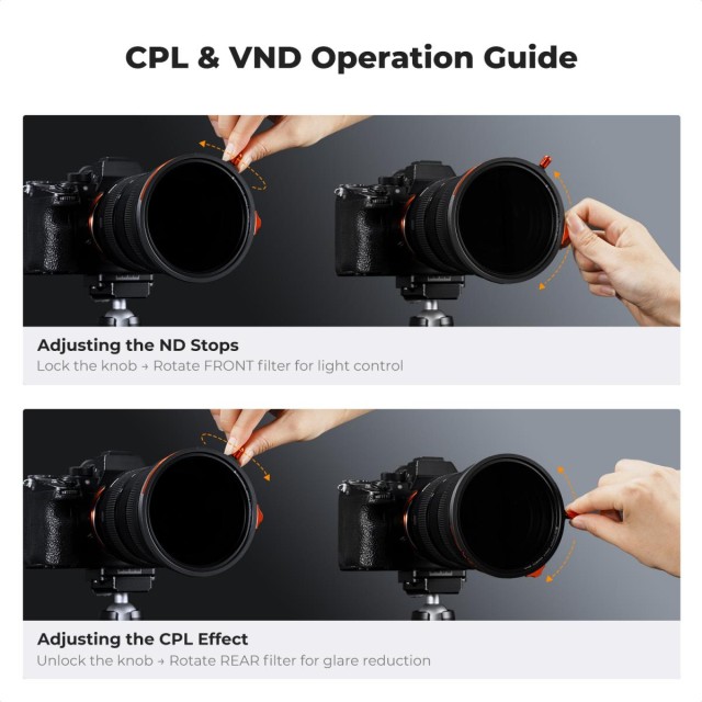 Díky magnetickému designu pro rychlou výměnu se filtry připevňují okamžitě bez nutnosti šroubování – ideální pro rychlé fotografování nebo časté úpravy. Filtr ND3–32 nabízí plynulé a přesné změny hustoty díky vestavěným koncovým dorazům a tichému, plynulému otáčení díky prémiové teflonové konstrukci – ideální pro filmaře používající směrové mikrofony. CPL zvyšuje kontrast, eliminuje odrazy a zesiluje barvy, zatímco filtr Black Mist 1/4 poskytuje filmovou měkkost, zářivé světlé tóny a přirozeně vypadající tóny pleti.