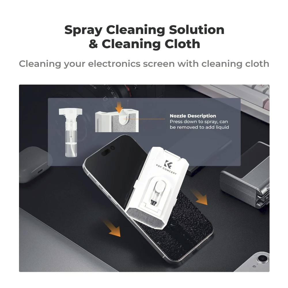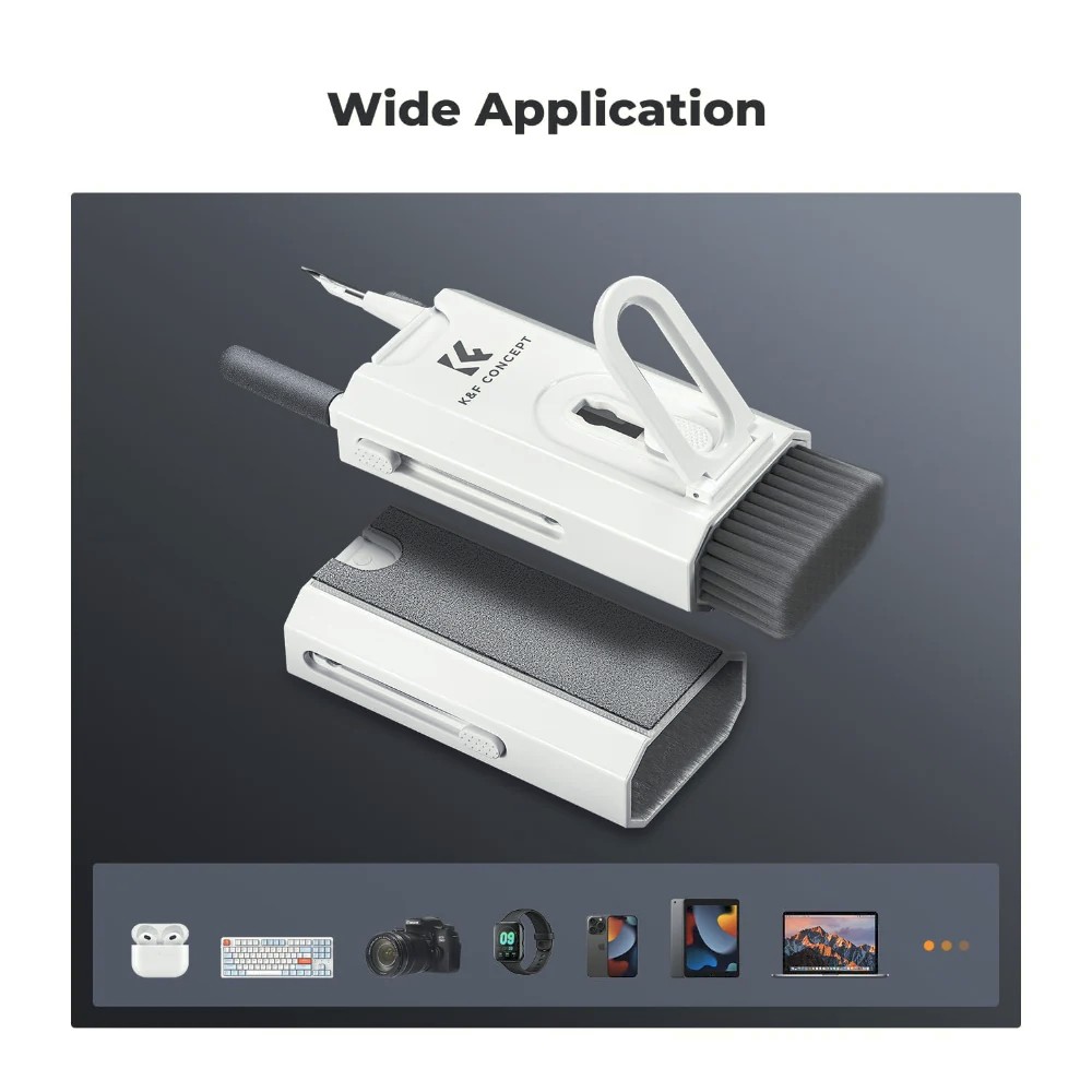Udržujte svá zařízení bez poskvrny díky čisticí sadě K&F Concept 8 v 1. Tato přenosná multifunkční sada obsahuje všechny nezbytné nástroje pro bezpečné a účinné čištění klávesnic, smartphonů, počítačů, sluchátek a dalších zařízení.
