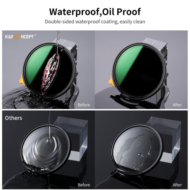 Tento multifunkční filtr s oboustrannými vícevrstvými povlaky (celkem 28 vrstev) účinně snižuje odrazy vycházející ze samotného filtru, hydrofobní, odolný proti poškrábání , odolný proti olejům, snadno se čistí.
