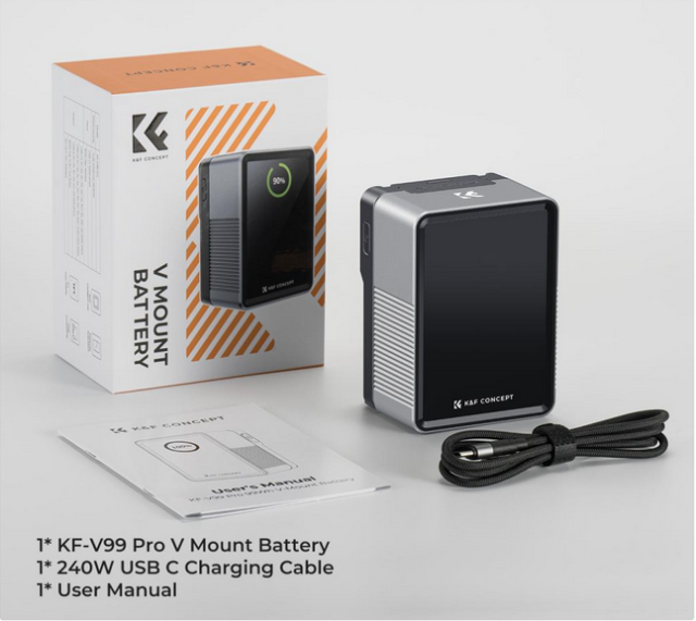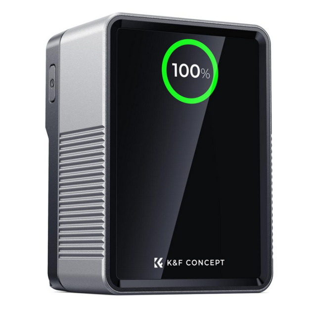 Baterie K&F Concept 99Wh Pro Mini V Mount představuje základní řešení napájení pro fotografy a kameramany na cestách. S kapacitou 99Wh a 6700mAh při napětí 14,8V je vhodná pro cestování letadlem a splňuje předpisy pro ruční zavazadla. Tato baterie je vybavena pokročilou 100W PD technologií USB-C, která zajišťuje rychlé dobíjení a schopnost efektivně napájet notebooky, smartphony a další zařízení. Její rozsáhlé možnosti připojení zahrnují dva porty USB-C, jeden port USB-A, jeden port DC (12V, 5,5x2,5mm), porty BP a D-TAP, což z ní činí univerzální napájecí rozbočovač. Barevný TFT displej v reálném čase poskytuje přehledné sledování výstupního výkonu a stavu baterie. Je vyroben z odolné hliníkové slitiny a ohnivzdorného počítače a je také vybaven nouzovým nočním světlem pro pohodlí při slabém osvětlení, což zajišťuje spolehlivost v náročných prostředích.