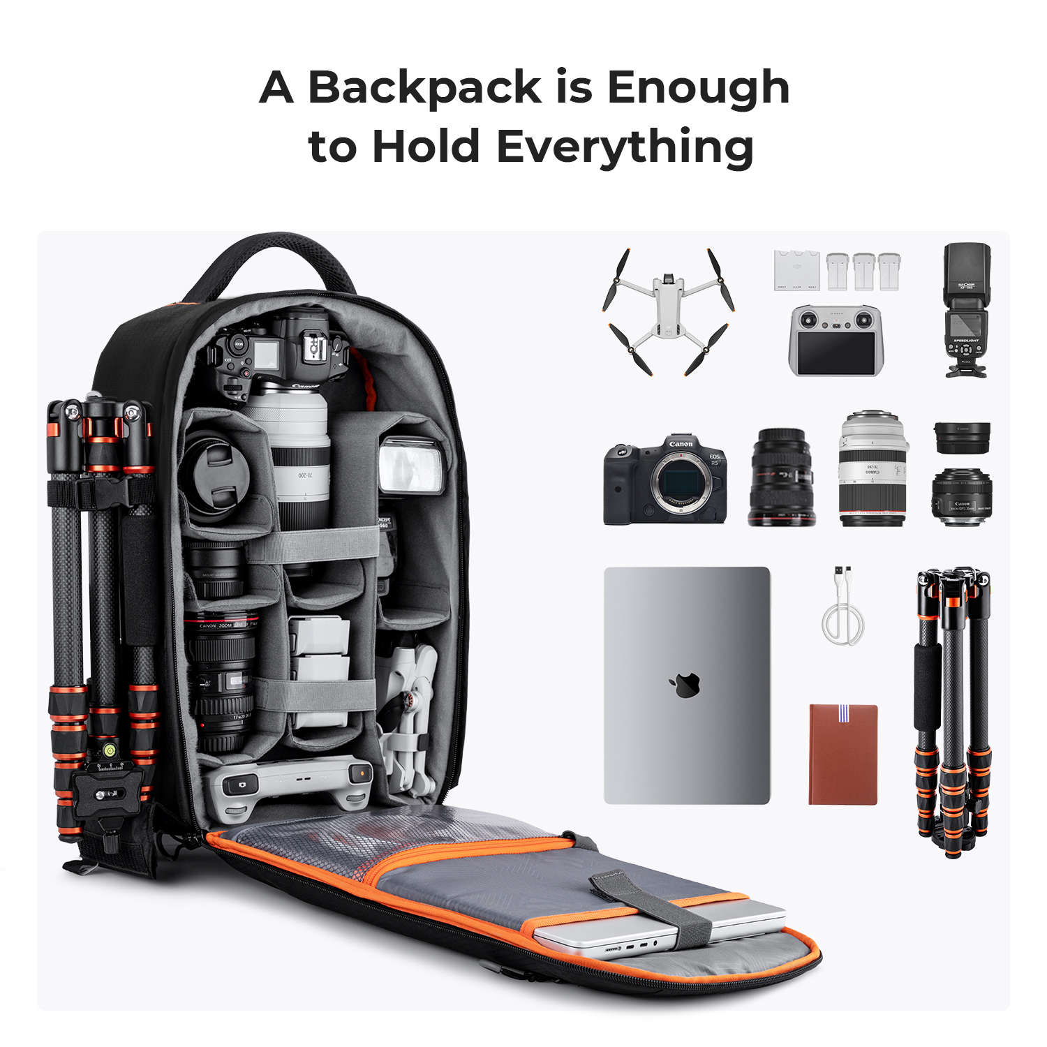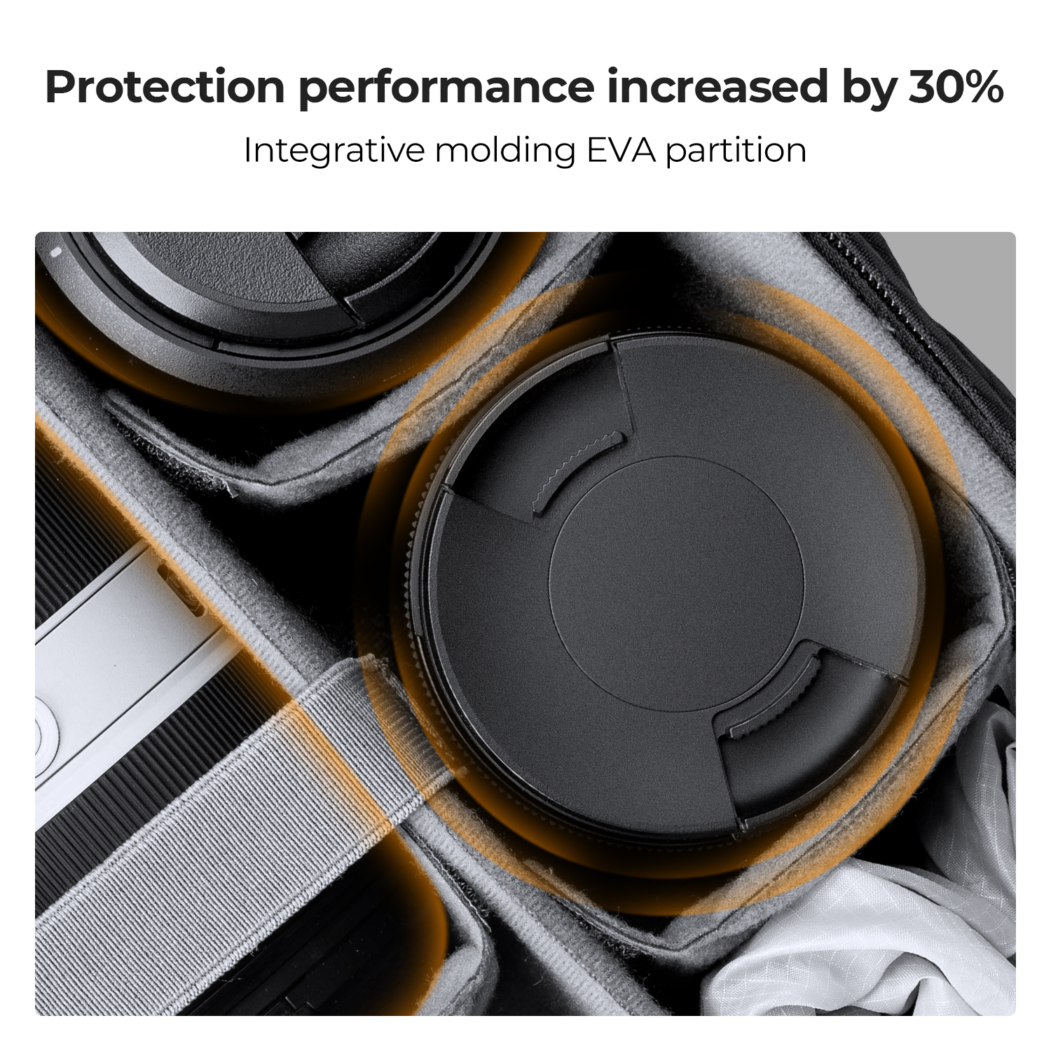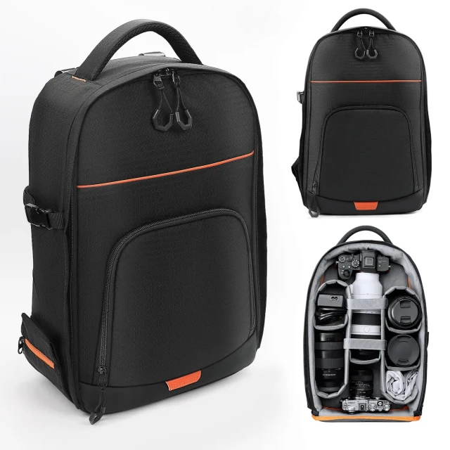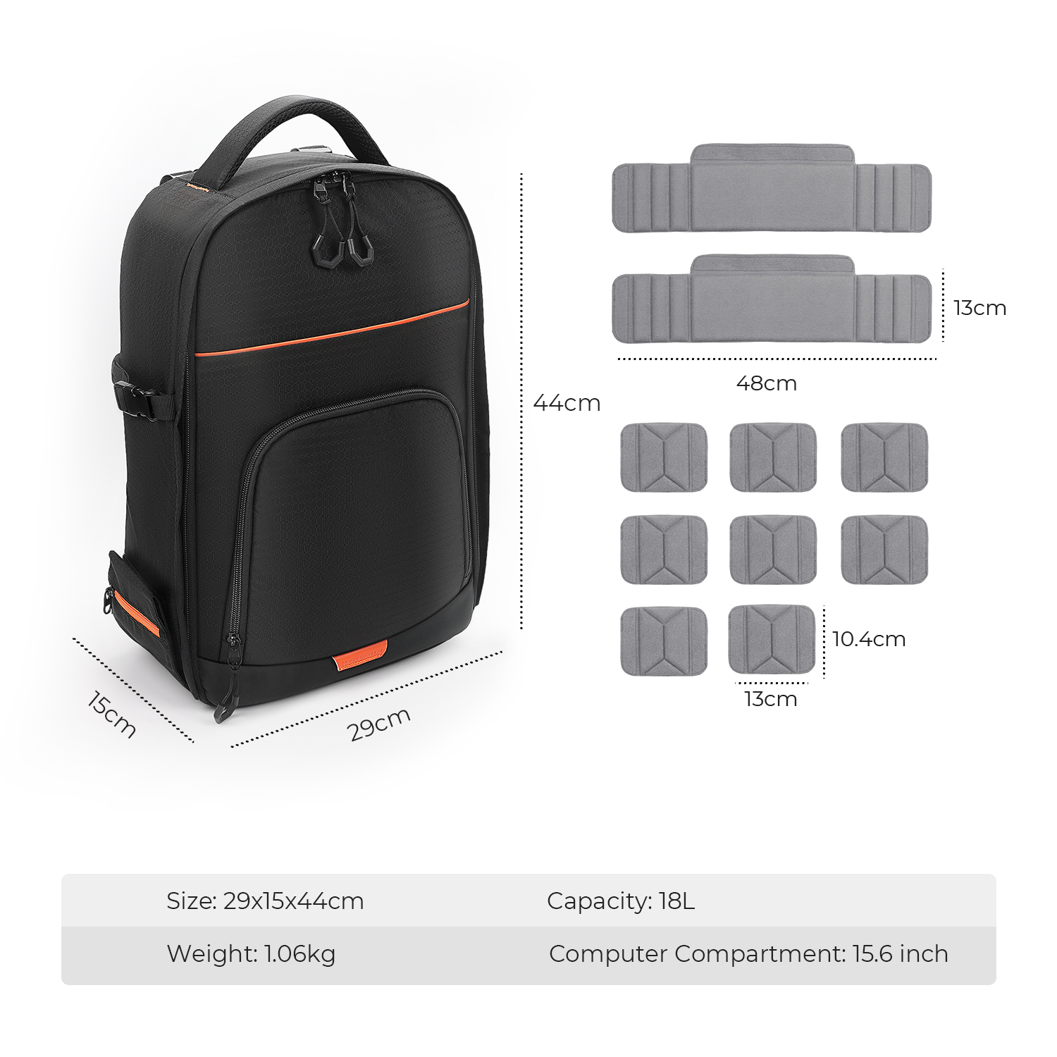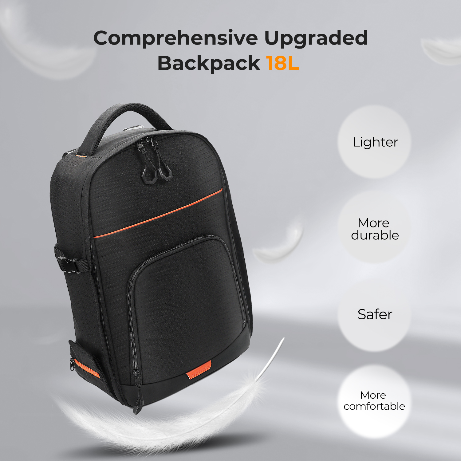 Batoh 18 l. Lehká konstrukce s ohledem na maximální ochranu, bezpečnost a pohodlí. Přední otevírání, lepší ochrana a ochrana proti krádeži, 180° úplné otevření, přizpůsobitelné oddíly, přehledné uspořádání prostoru a vybavení, vnitřní obsah je přehledný na první pohled, maximální pohodlí při uspořádání, maximálně dva přístroje a více objektivů, splňuje potřeby různých zařízení a lze jej libovolně přizpůsobit.