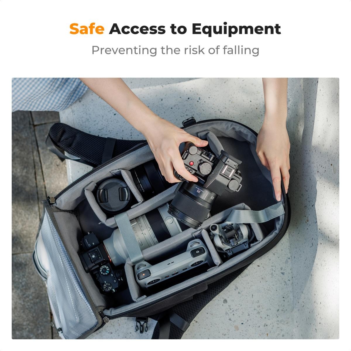 K&F CONCEPT Backpack 18L Nature Wander 04 je ideální na cesty k uložení stativu, fotoaparátu a objektivů s přihrádkou na notebook a pláštěnkou.
