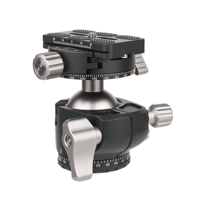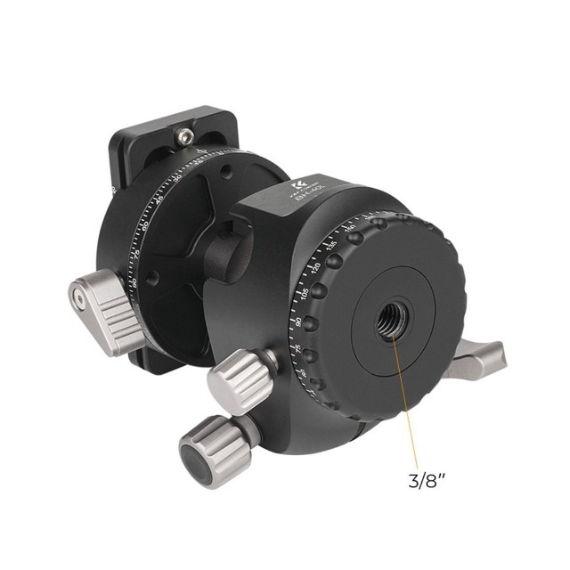- Bezolejová tlumicí konstrukce umožňuje plynulé a přesné otáčení kamery; základna je jemně gravírovaná laserem a lze ji postupně sledovat a otáčet v rozsahu 0°-360° v krocích po 5°. Horizontální stupnice 360° je vhodná pro fotografy k pořizování souvislých panoramatických snímků.