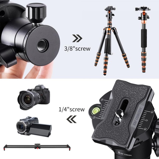Kulová hlava stativu pro fotoaparáty K&F Concept s 1/4" rychloupínací destičkou a vodováhou, nosnost 8 kg, pro stativ, monopod, posuvný fotoaparát, zrcadlovku