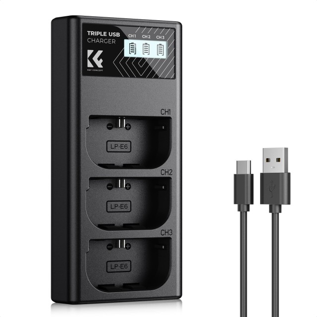 Nabíječka K&F Concept Canon LP-E6NH 3-Pack s LCD displejem představuje efektivní a spolehlivé řešení nabíjení pro profesionální i amatérské fotografy. Tato nabíječka je navržena pro nabíjení až tří baterií Canon LP-E6NH současně a je ideální pro delší fotografování a cestování.