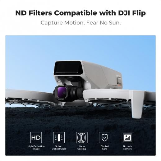 Sada 4 filtrů ND K&F Concept pro DJI Flip (ND8/ND16/ND32/ND64) – Profesionální filtry pro kontrolu světla vyrobené z prémiového optického skla AGC a 28vrstvého nano povlaku pro jasné, vyvážené a filmové záběry.