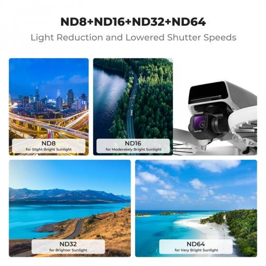 Vylepšete své letecké a akční záběry pomocí sady 4 ND filtrů K&F Concept pro DJI Flip, která obsahuje filtry ND8, ND16, ND32 a ND64 navržené tak, aby poskytovaly vyváženou expozici a filmové rozmazání pohybu za různých světelných podmínek.