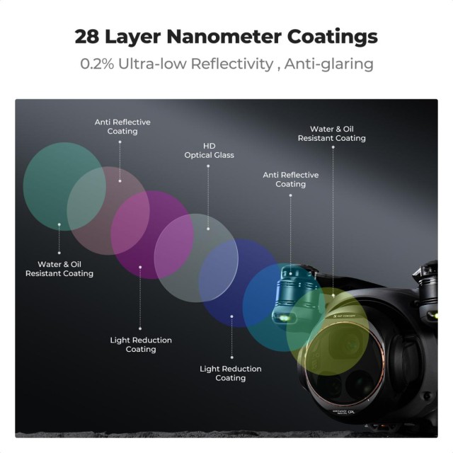 Vylepšete své letecké záběry pomocí filtru K&F Concept KF01.2071 CPL, který byl speciálně navržen pro DJI Mavic 4 Pro. Tento kruhový polarizační filtr s vysokým rozlišením redukuje odlesky a odrazy a zároveň zvyšuje sytost barev a kontrast – je tak ideální pro filmové záběry z dronu.