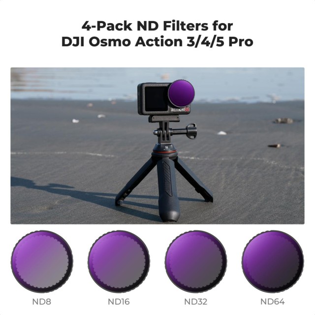 Vylepšete své fotografické a videografické schopnosti s DJI Osmo Action 4 pomocí sady 4 ND filtrů K&F CONCEPT. Tato sada obsahuje optické skleněné filtry ND8, ND16, ND32 a ND64 s pokročilou vícevrstvou povrchovou úpravou a nabízí vynikající čistotu, odolnost proti poškrábání a univerzální redukci světla pro profesionální kvalitu záznamu za jakýchkoli světelných podmínek.
