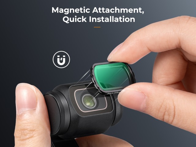 Vylepšete své videozáznamy s kamerou DJI Osmo Pocket 3 pomocí magnetického filtru K&F Concept. Černá mlha 1/4 objektivu s jednostrannou povrchovou úpravou vylepšuje vaše záběry tím, že snižuje odlesky a vytváří filmovou atmosféru, čímž zajišťuje, že vaše vizuální záběry vyniknou čistotou a stylem.
