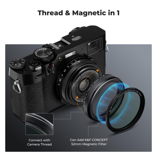 Černý filtr pro mlhu 1/4 dodává snímkům jemný, snový halo efekt a zároveň snižuje kontrast a ostrost při fotografování. Zjemňuje strukturu pleti, redukuje nerovnosti a dodává pleťovým tónům jemnější a přirozenější vzhled. Kompatibilní s fotoaparáty Fujifilm X100/X100F/X100S/X100T/X100V/X100VI.