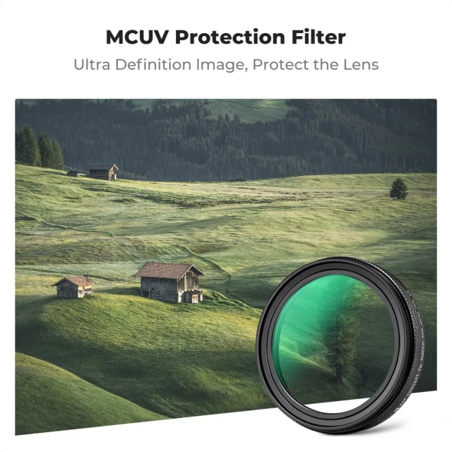 - * 【Optické sklo a vícevrstvá povrchová úprava】UV filtr je vyroben z importovaného optického skla AGC, má propustnost světla až 99,6 % a je opatřen 28 vrstvami oboustranné voděodolné a odolné proti poškrábání povrchové úpravy. Redukuje ultrafialové záření a pomáhá eliminovat modrý nádech na snímcích. Chrání objektiv před prachem, nečistotami a poškrábáním.