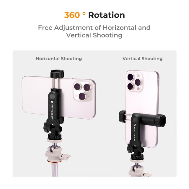 - * Držák mobilního telefonu má 360° nastavení úhlu, které může vyhovovat jak horizontálnímu, tak vertikálnímu snímání a lépe se přizpůsobit různým potřebám snímání.