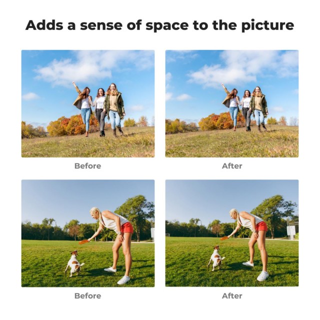 Funkce širokoúhlého objektivu pro DJI Osmo Pocket 3. Tento širokoúhlý objektiv od společnosti K&F Concept je speciálně navržen pro DJI Osmo Pocket 3, zvyšuje FOV objektivu na 112°, snadno se magneticky připevňuje na přední stranu objektivu Osmo Pocket 3 a okamžitě rozšiřuje zorné pole pro úchvatné širokoúhlé fotografie.