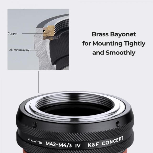 Využijte potenciál svých objektivů řady M42 na tělech řady M4/3 pomocí našeho adaptérového kroužku. Tento kroužek s plným manuálním ovládáním a stabilní protiskluzovou konstrukcí pro větší bezpečnost je nezbytnou výbavou každého fotografa. Logo s červeným bodem zajišťuje přesné zarovnání a usnadňuje instalaci a demontáž bez námahy. Těsné spojení spojovacího kroužku a bajonetu zaručuje bezpečné uchycení bez vůle. Tento odolný kroužek, vyrobený z vysoce přesné slitiny hliníku a hořčíku, umožňuje pohodlné a plynulé makrofunkce objektivu, včetně možnosti zaostřit na nekonečno. Pozvedněte své fotografické zážitky díky tomuto výjimečnému adaptéru.