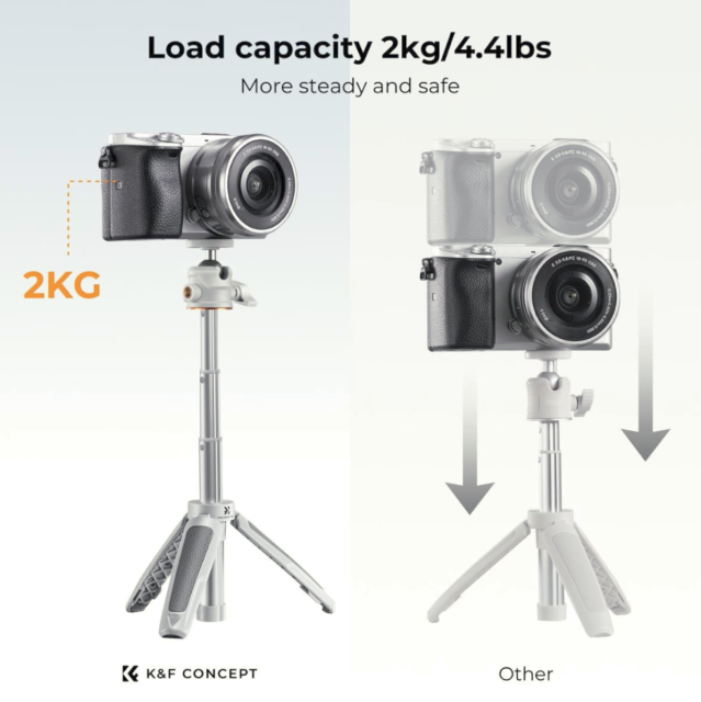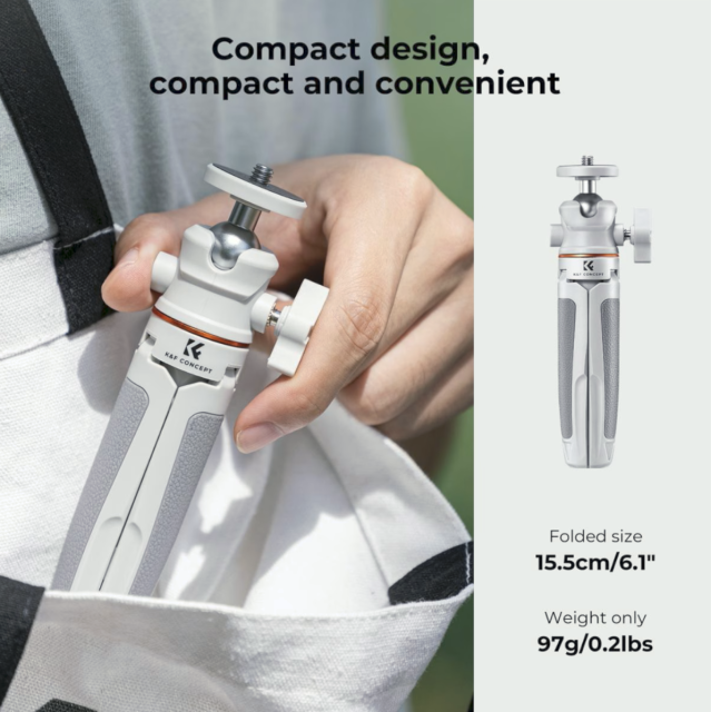 Mini stativ K&F Concept MS02 (oranžovo-šedý) je cenově dostupný, ale přesto špičkový nástroj určený pro fotografování smartphonem, vlogování, online streamování a cestovní fotografování. Je navržen s ohledem na přenosnost a díky kompaktní délce ve složeném stavu pouhých 12,5–15 cm se snadno vejde do kapsy, tašky nebo kabelky, což z něj činí ideální volbu pro tvůrce na cestách. Navzdory svým malým rozměrům poskytuje MS02 výjimečnou stabilitu díky protiskluzovým nohám potaženým gumou, které zajišťují pevný úchop na jakémkoli povrchu – ať už natáčíte doma, venku nebo na place.