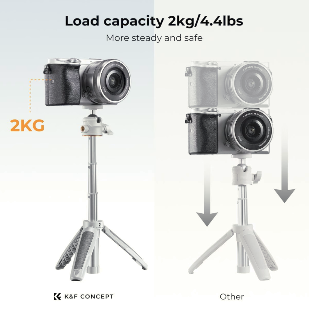 K&F Concept MS02 (oranžovo-šedý) je kompaktní, lehký a velmi univerzální mini stativ určený pro smartphony a fotoaparáty, který je ideální pro vlogery, cestovatele a tvůrce obsahu na cestách. Díky výsuvnému krku, robustním protiskluzovým nohám, 360° nastavitelné kulové hlavě a univerzálnímu držáku na smartphone nabízí stabilní fotografování z jakéhokoli úhlu. Díky přiloženému Bluetooth dálkovému ovladači a ultra přenosnému skládacímu designu je MS02 ideálním všestranným řešením pro selfie, natáčení na stole a mobilní fotografování.