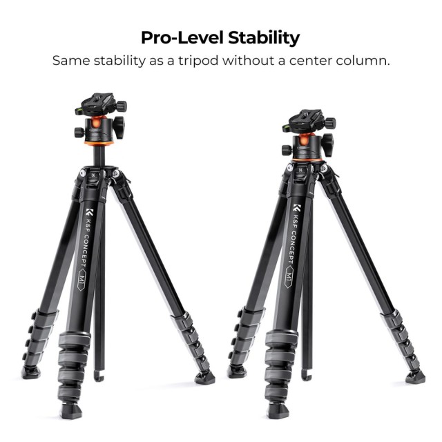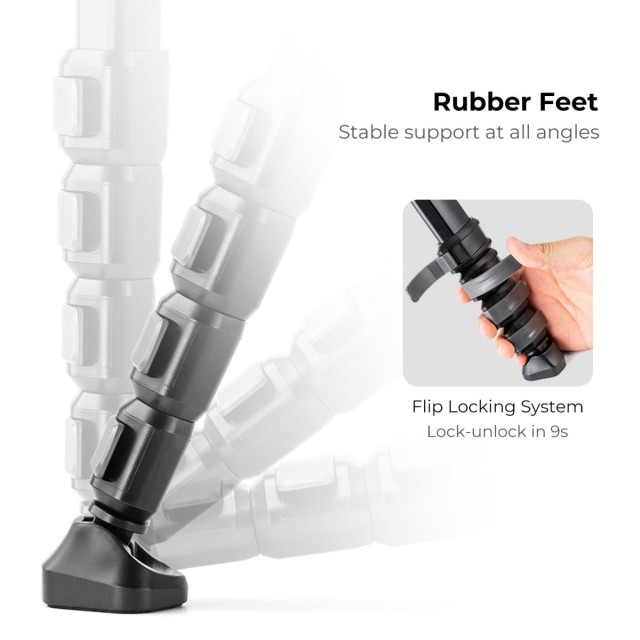 Cestovní hliníkový stativ K&F Concept Mutate Series má kompaktní a přenosné tělo, protože jeho skládací rozměr je menší než 500 mm/20", a velmi nízkou hmotnost 1819 g/4 kg. Průměr složeného stativu je menší než objem běžné láhve na vodu. Bez ohledu na cestování a práci se stativ díky své kompaktní konstrukci snadno vejde do každé brašny na fotoaparát nebo do zavazadla. Aby byla zajištěna stejná stabilita stativu jako u stativu bez středového sloupku, je stativ navržen s vloženou uzamykací základnou, takže nohy stativu lze pevně uzamknout a zajistit úžasnou stabilitu na profesionální úrovni.