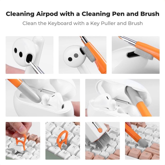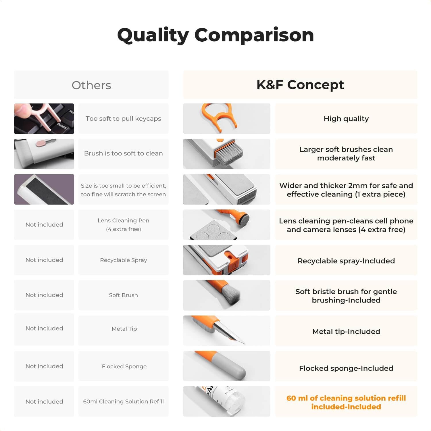 Nově vylepšená sada K&F Concept 11 v 1 pro čištění klávesnic a elektroniky s 60 ml čisticího prostředku je kompletní přenosné řešení pro důkladné a bezpečné čištění klávesnic, obrazovek, sluchátek, fotoaparátů a běžných elektronických zařízení.