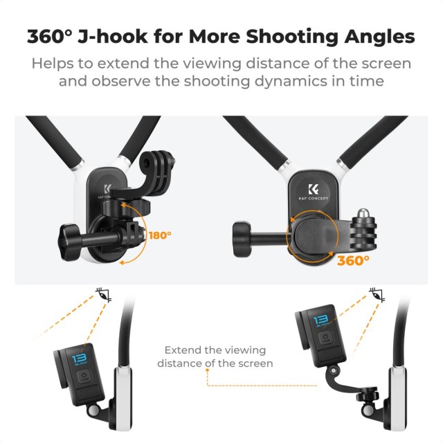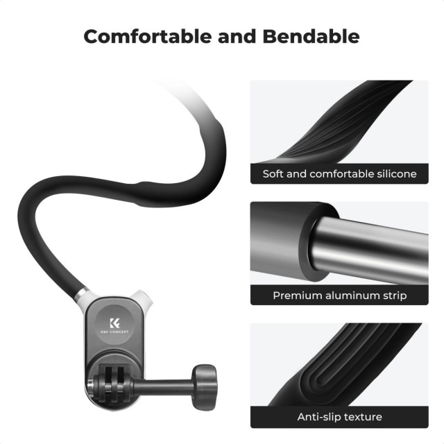 - * 【24" ohebný a nastavitelný materiál】: pohodlný ohebný silikonový hliník Střední měkkost a tvrdost, 60 cm (24 palců), držák pro vlogování je flexibilně tvarovatelný, aby se přizpůsobil velikosti krku, a lze jej snadno uložit.