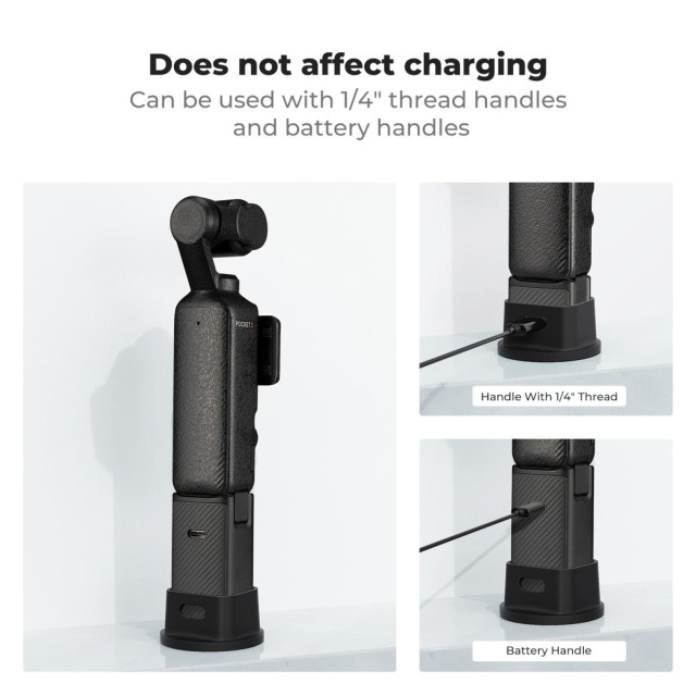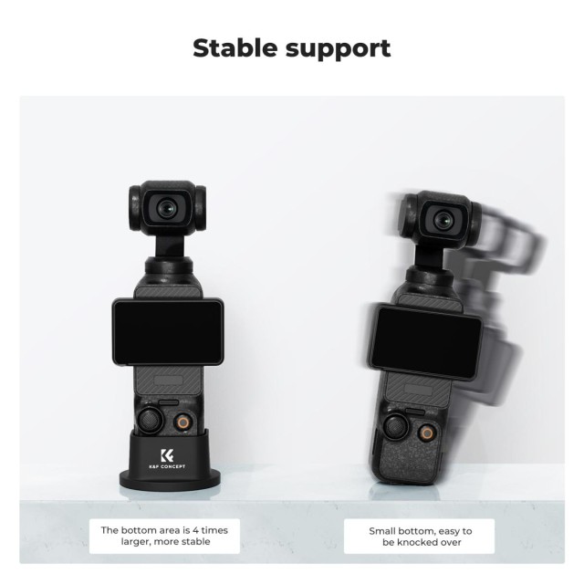 Základna je navržena pro Pocket3. Velká spodní plocha umožňuje stabilnější postavení na stole a zabraňuje pádu. Perfektní fit. Navrženo speciálně pro Pocket3, podporuje instalaci na tělo, závitovou rukojeť a odolnou rukojeť a zároveň podporuje použití originálního ochranného pouzdra.