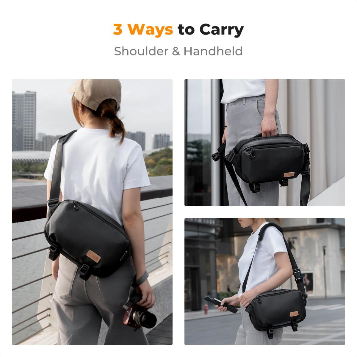 Taška K&F Concept Alpha Camera Sling Bag kombinuje multifunkční možnosti nošení s robustní ochranou a promyšleným uspořádáním pro fotografy na cestách. S rozměry332215 cm(13,1"*8,8"*6") a velkorysým objemem 10 litrů pohodlně pojme jedno tělo digitální zrcadlovky/bezzrcadlovky a dva objektivy, což ji činí ideální jak pro profesionální focení, tak pro každodenní dojíždění. Její přizpůsobivý design umožňuje plynulou přeměnu mezi taškou přes rameno, taškou přes tělo, taškou na pas, taškou na hrudník nebo tradiční kabelkou, což vyhovuje různým preferencím a aktivitám.