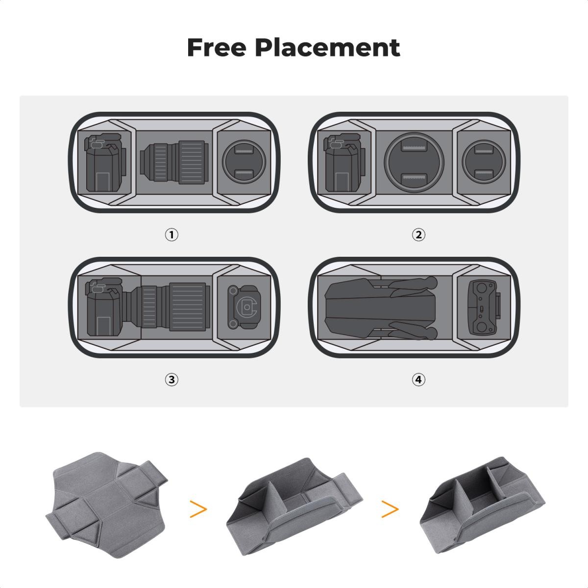 **Komplexní ochrana:** Vyrobeno z odolné voděodolné, odolné proti poškrábání a opotřebení tkaniny; podšito 10 mm vysokou hustotou EPE nárazuvzdornou bavlnou pro absorpci nárazů; obsahuje odnímatelné profesionální EVA přepážky pro přizpůsobení přihrádek a ochranu objektivů nebo vybavení před poškozením.