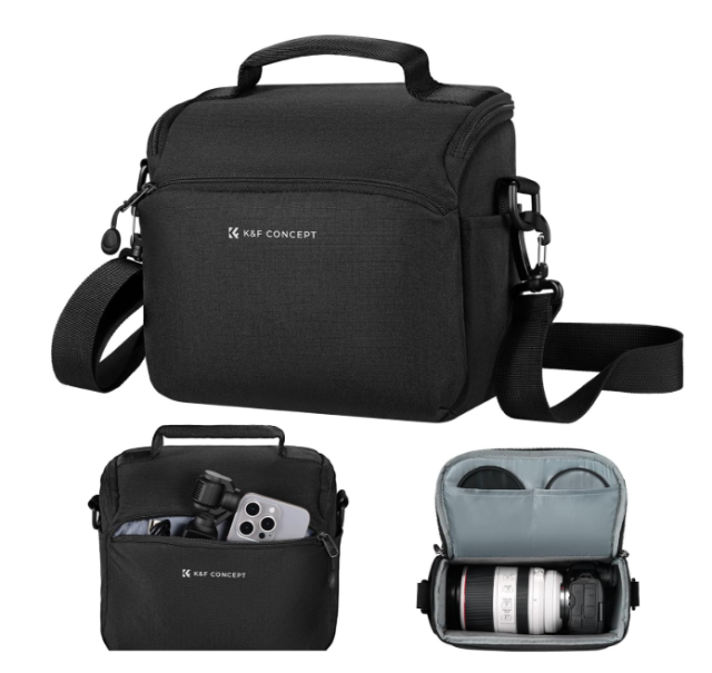 Foto brašna K&F Concept Urban Wander Sling (5 l, černá) je elegantní, ultralehká brašna přes rameno o hmotnosti 0,61 lb s vnějšími rozměry 9,1 × 7,3 × 5,1 palce (8,3 × 6,8 × 4,3 palce vnitřní rozměry), vyrobená z vysoce hustého plátna 300D s voděodolnou úpravou a včetně pláštěnky pro ochranu za každého počasí. Díky širokému otvoru s dvojitým zipem pro rychlý přístup, odnímatelné polstrované přepážce pro přizpůsobení rozložení pro digitální zrcadlovky nebo bezzrcadlovky a konvertibilnímu designu, který se dá přeměnit z brašny na fotoaparát na každodenní tašku přes rameno, je ideální pro každodenní dojíždění, cestování v přírodě nebo krátké výlety – doplněná nastavitelným popruhem o délce 75–133 cm a doživotní zárukou.