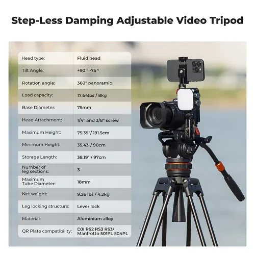 Dosáhněte plynulého, filmového pohybu a pevné stability s profesionálním videostativem K&F Concept KF09.147V1 VA3+BV10. Tento stativ je vyroben z odolné vysoce pevné hliníkové slitiny a je určen pro kameramany, filmaře a tvůrce obsahu, kteří vyžadují spolehlivost,…