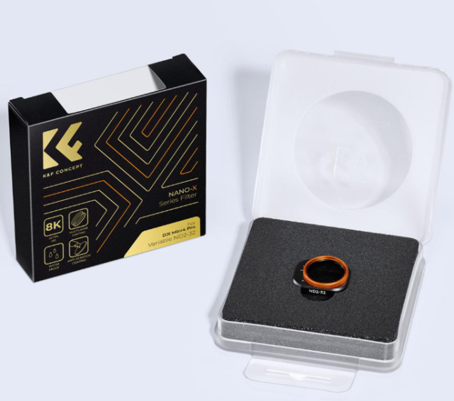 Variabilní filtr K&F Concept ND2-32 (1–5 stupňů) je limitované příslušenství VND precizně vyrobené pro DJI Mini 4 Pro, které nabízí nastavitelnou redukci světla pro jemné ovládání expozice za mírně jasných podmínek – ideální pro filmové záběry z dronu s přirozeným rozmazáním pohybu. Tento filtr o hmotnosti 2 g, který je bezpečný pro gimbal, je vyroben z prémiového optického skla AGC s 28vrstvým nano-povlakem pro živou čistotu a odolnou ochranu. Bezpečně se připevňuje pomocí zadní spony a obsahuje ochranné pouzdro, které zajišťuje bezchybný výkon a nulový vliv na dynamiku letu.
