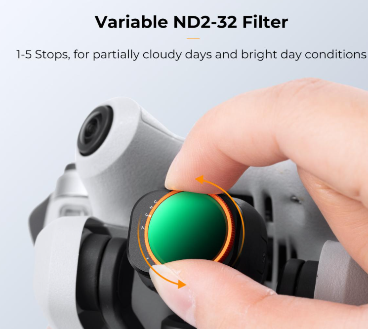 Vylepšete svou leteckou kinematografii pomocí filtru K&F Concept Variable ND2-32, lehkého neutrálního filtru optimalizovaného pro drony, který byl navržen exkluzivně pro DJI Mini 4 Pro, aby poskytoval profesionální flexibilitu expozice bez kompromisů. Tento omezený variabilní ND filtr poskytuje plynulé snížení světla o 1–5 stupňů (ND2 až ND32) a umožňuje pilotům jemně doladit jas pro plynulejší video, snížené rychlosti závěrky a umělecké rozmazání pohybu při letech v zlaté hodině, přechodech oblačnosti nebo městských západech slunce – to vše při zachování věrných barev, ostrosti od okraje k okraji a vyváženého kontrastu.