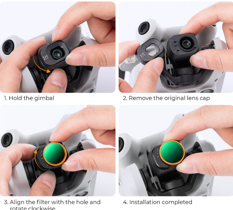 Je vyroben z prvotřídního optického skla AGC a zpevněn 28 vrstvami pokročilého nano-povlaku na obou stranách, který odpuzuje vodu, olej, prach a škrábance a zachovává dokonalou kvalitu obrazu i v náročných podmínkách, jako jsou pobřežní větry nebo prašné vzlety. Ultralehký rámeček o hmotnosti pouhých 2 g (0,07 oz) prochází přísnými testy, aby bylo zaručeno, že nebude rušit kalibraci gimbalu, rovnováhu nebo výkon dronu, a umožní tak nepřerušované a stabilní lety. Přesně vyrobená zadní spona se perfektně přizpůsobí základně objektivu Mini 4 Pro, což umožňuje okamžitou instalaci a pevné uchycení během manévrů při vysoké rychlosti nebo v turbulentních podmínkách.