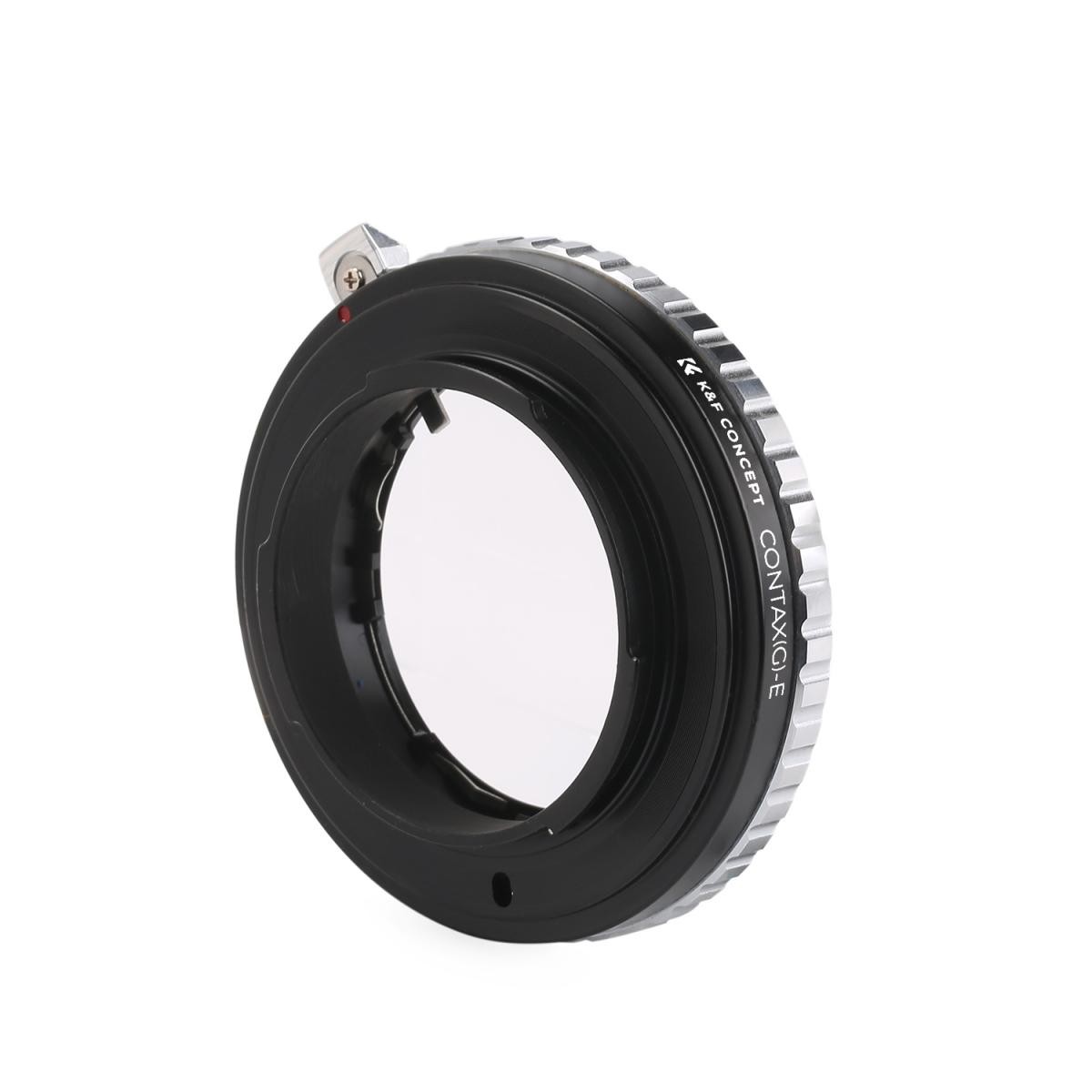 Adaptér K&F Concept Contax G na Sony E-Mount umožňuje použití objektivů Contax G na bezzrcadlovkách Sony E-mount. Je vyroben z pevné mosazi a hliníku, má manuální ovládání a podporuje nekonečné zaostření.