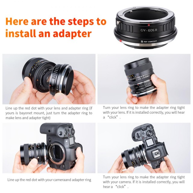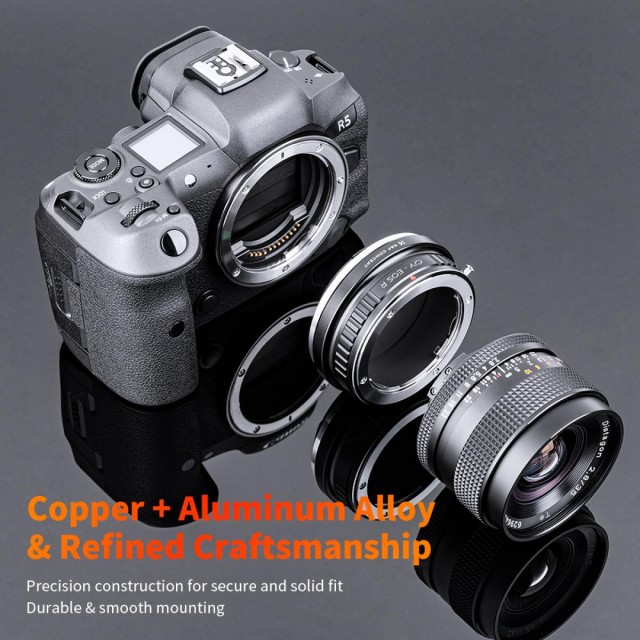 Adaptér K&F Contax Yashica Lenses to Canon EOS R Mount Camera Adapter umožňuje fotografům připojit klasické objektivy Contax/Yashica k bezzrcadlovkám Canon EOS R. Tento adaptér je vyroben z vysoce kvalitní mosazi a hliníku a zajišťuje stabilní, přesné a odolné spojení mezi objektivem a fotoaparátem. Je plně manuální, umožňuje úplnou kontrolu nad zaostřením a clonou a podporuje zaostření na nekonečno pro všestranné fotografování. Ideální pro profesionální a kreativní fotografy, kteří chtějí používat starší objektivy C/Y s moderními bezzrcadlovými systémy Canon. U těžších středoformátových objektivů se doporučuje použít stativ nebo držák teleobjektivu, aby byla zachována rovnováha a zajištěno stabilní fotografování.