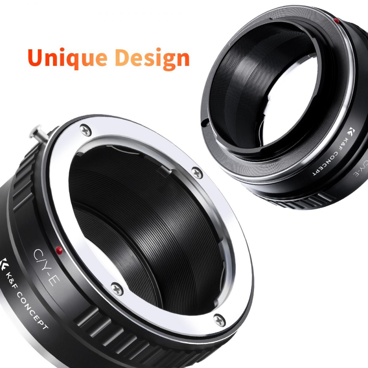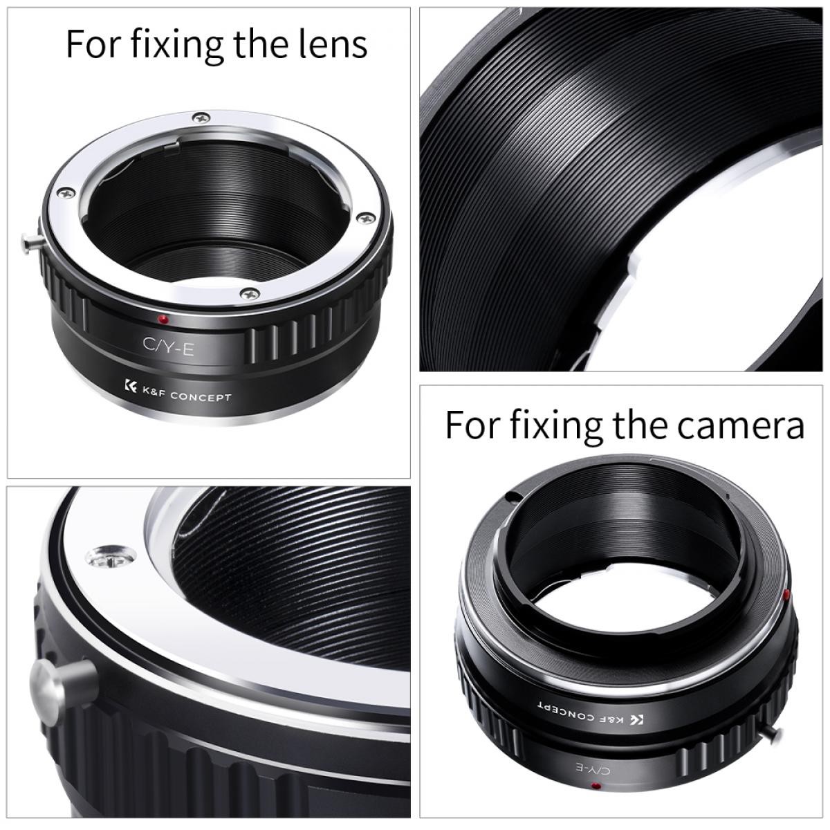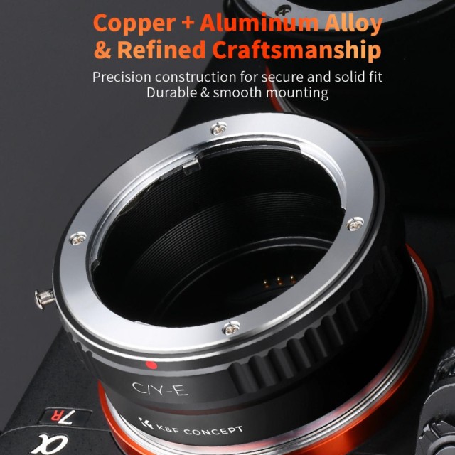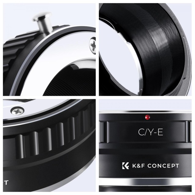 Adaptér K&F Contax/Yashica (C/Y) na Sony E-Mount umožňuje připevnění objektivů Contax a Yashica na bezzrcadlové fotoaparáty Sony E-mount. Vyznačuje se odolnou konstrukcí z eloxovaného hliníku, manuálním ovládáním a podporou nekonečného zaostření.