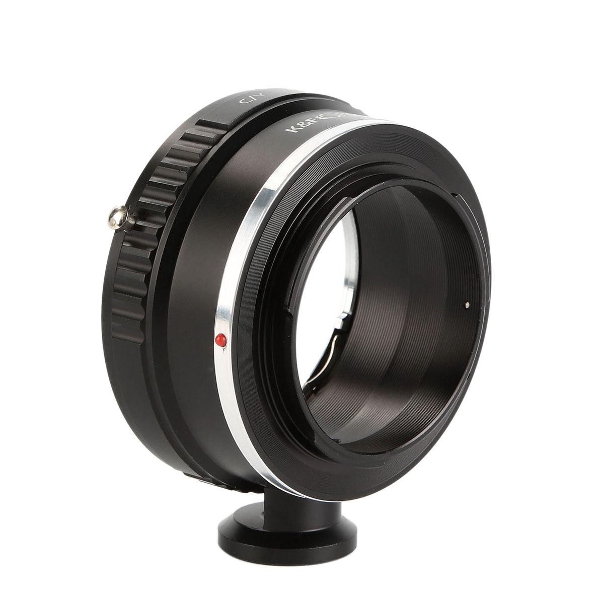 Adaptér objektivu K&F Contax/Yashica na Sony E s držákem na stativ umožňuje použití objektivů s bajonetem C/Y na bezzrcadlovkách Sony s bajonetem E. Je vyroben z mosazi a hliníku, poskytuje stabilní manuální ovládání, podporuje zaostření na nekonečno a obsahuje držák na stativ pro těžší objektivy.