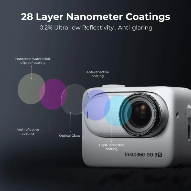 K&F Concept Go 3S kruhový polarizační filtr CPL, kompatibilní s akční kamerou Insta360 GO 3S, optické sklo s 28násobnou povrchovou úpravou, (NE pro Insta360 GO 3). Filtr CPL účinně odstraňuje odlesky z nekovových povrchů, jako je voda a sklo, a vylepšuje barvy a kontrast, zejména při fotografování modré oblohy a bílých mraků.