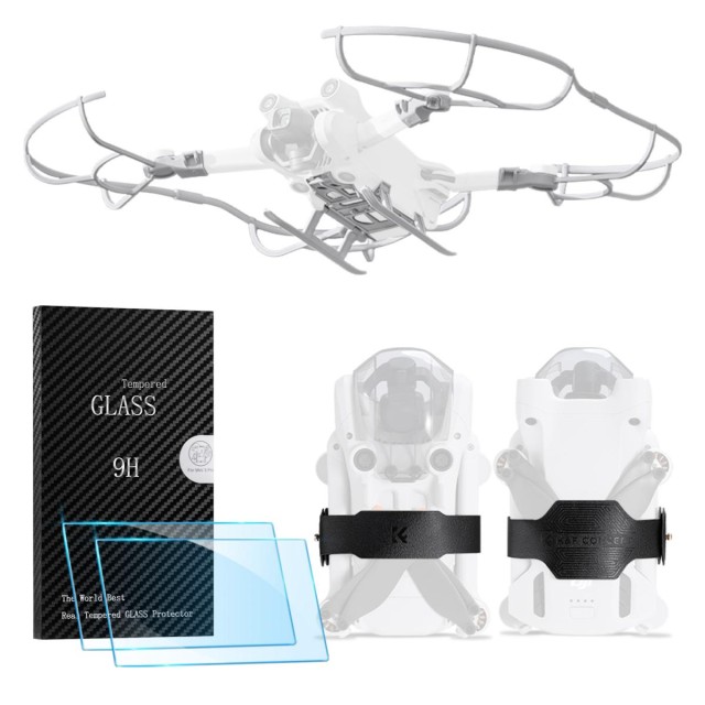 Ochranná fólie DJI Mini 3 PRO pro dálkové ovládání s obrazovkou (balení 2 kusů) + zvýšený přistávací podvozek + kroužek proti nárazu vrtule + svazek vrtulí, sada 4 v 1