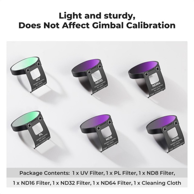 - * 【Sada 6 filtrů】Tato nejnovější sada filtrů ND & CPL & UV od společnosti K&F Concept je speciálně navržena pro DJI NEO, každý filtr je lehký 0,5 g, což zajišťuje bezpečnost gimbalu, který je vyroben ze špičkového optického skla HD a zajišťuje křišťálově čistý obraz během leteckého snímání.