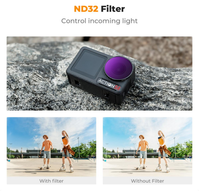 Ať už zachycujete dobrodružství za jasného slunečního světla, nebo za zamračeného počasí, tento filtr ND32 zvyšuje výkon vaší kamery DJI Osmo Action 4/5 Pro a poskytuje ostrý, živý a nezkreslený obraz.