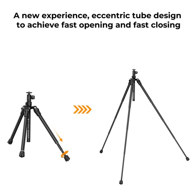 Flexibilní stativ od společnosti K&F Concept nabízí všestranné funkce a plynule přechází mezi stativem, stolním stojanem a selfie tyčí, aby vyhovoval různým fotografickým potřebám, ať už cestujete, natáčíte vlogy, živě streamujete a podobně. Jeho jedinečná konstrukce s excentrickou trubkou zajišťuje rychlé a snadné nastavení, takže se můžete soustředit na fotografování a neztrácet čas. Tento stativ je vysoce přenosný pro cestování, má 4sekční nastavitelnou trubici v rozsahu od 36 cm/14,1'' do 170 cm/66,9'' a kompaktní délku ve složeném stavu pouhých 30 cm/11,8'', přičemž váží pouhých 0,88 kg/1,94 lbs. Může se pochlubit skvělou kompatibilitou, je vybavena standardním 1/4" závitem vhodným pro většinu rychloupínacích destiček Arca-Swiss a 1/4" šroubem pro různá zařízení, včetně fotoaparátů, digitálních zrcadlovek, projektorů, teleskopů a dokonce i mobilních telefonů pro pořizování selfie, živé vysílání a časosběrné snímání. Díky robustní nosnosti 4KG/8,8 lbs a hladké konstrukci bez olejového tlumení usnadňuje přesné otáčení fotoaparátu, zatímco 360stupňová horizontální stupnice na základně vylepšuje panoramatické fotografie a přináší působivé výsledky, které konkurují ultraširokoúhlým objektivům.