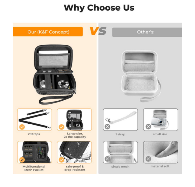 K&F EVA Box je univerzální, odolné pouzdro na fotoaparát s pouzdrem z materiálu EVA, které poskytuje vynikající ochranu proti vodě, nárazům, prachu a uklouznutí. Nabízí flexibilní úložný prostor s pohyblivými přepážkami a více možností pohodlného přenášení.